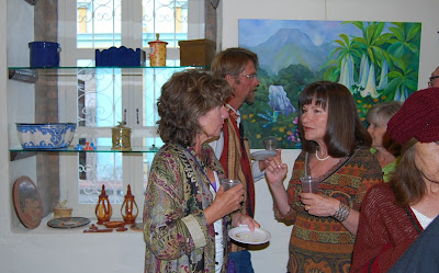 She had a featured artist, Arja Aulikki Toivonen, originally from Finland (in the center of the photo) who now lives in Peguche, just down the road from us. Her paintings are behind her. It was tough to get good photos of them because of all the people around.